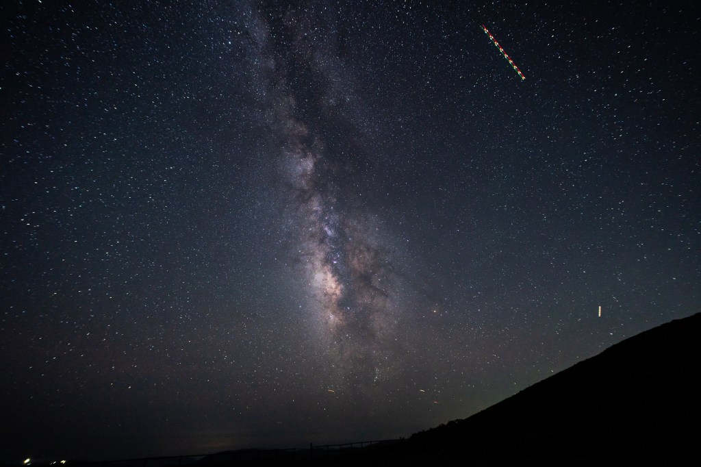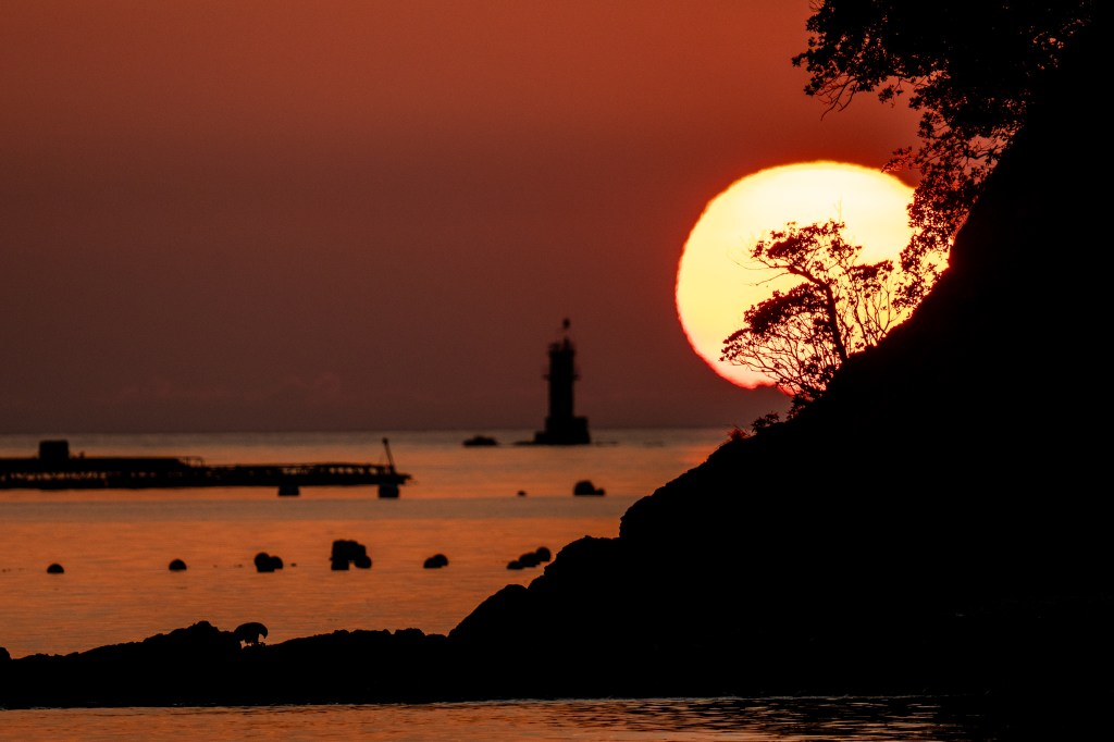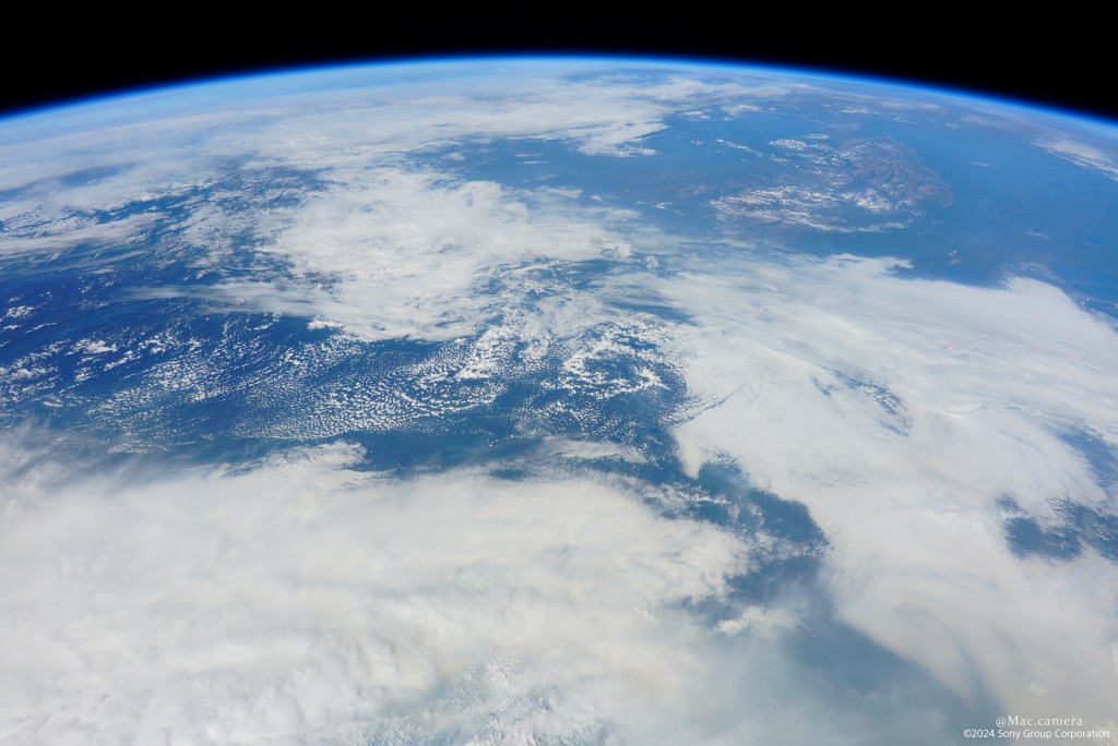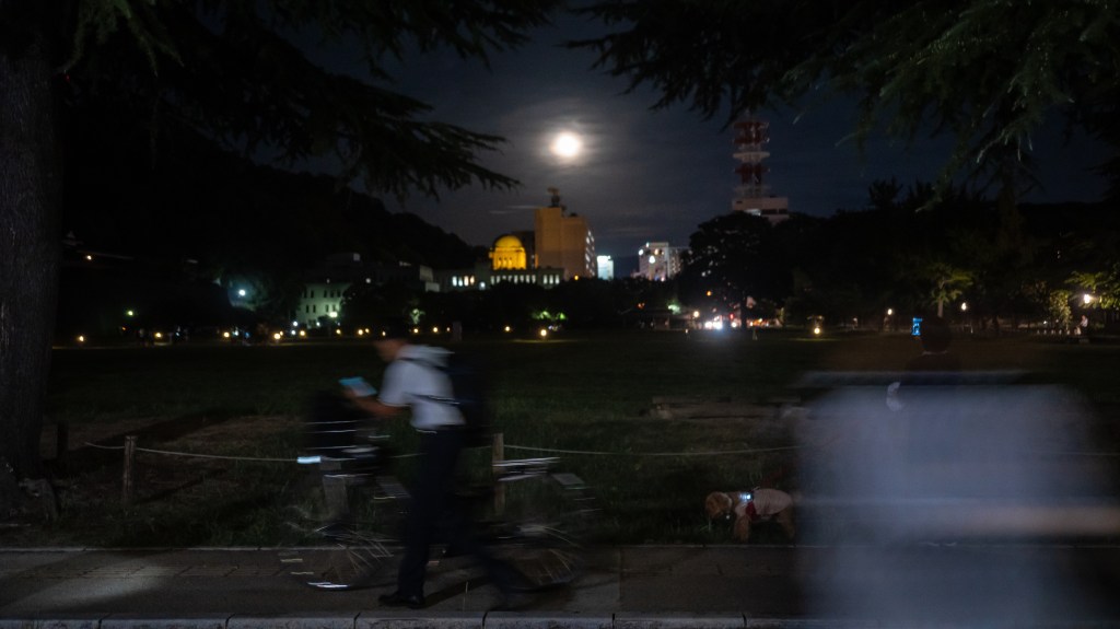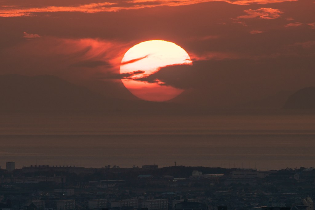 超高倍率ズームで月を撮影。鳥が横切ります。